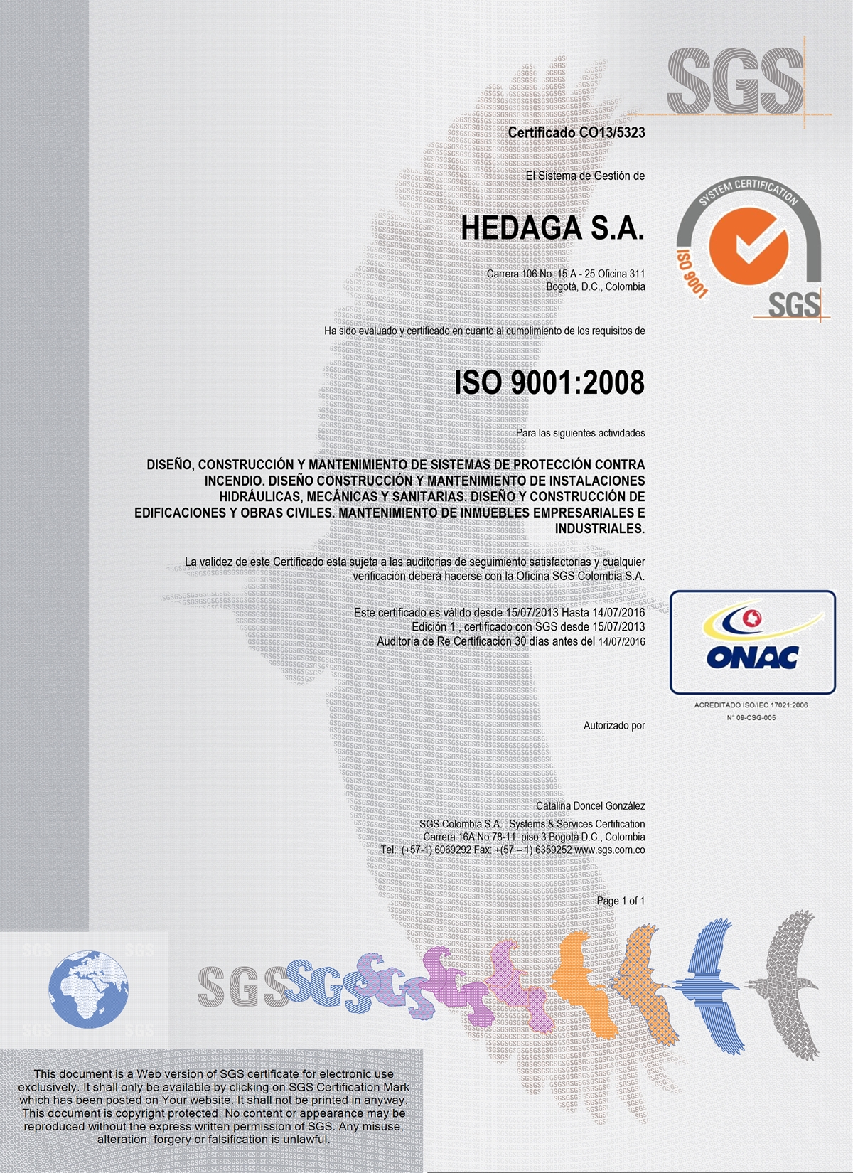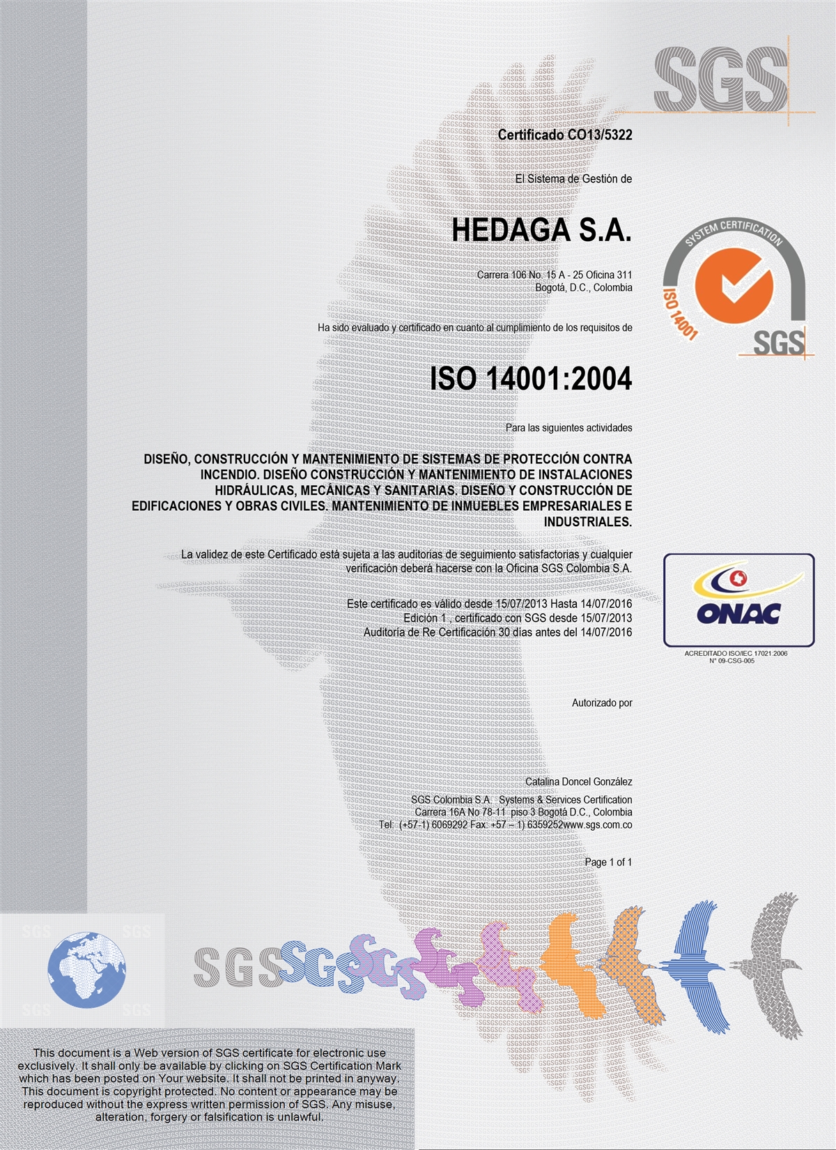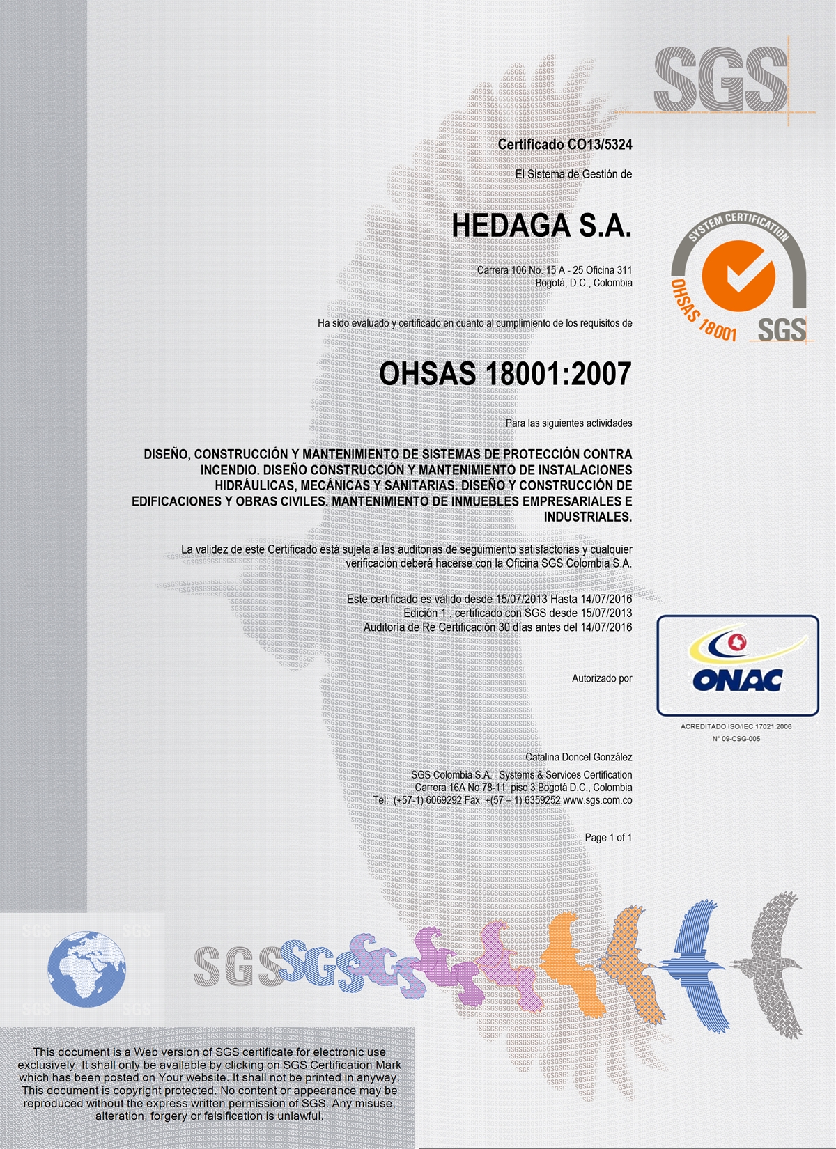 HEDAGA S.A.S., sociedad constituida en Colombia, con Nit 830.091.493 - 8, domiciliada en la Carrera 106, 15 A 25, Of. 311 Edificio Business Center de la ciudad de Bogotá D.C., Colombia, y su teléfono (+57-1) 485 7222 (en adelante HEDAGA), atendiendo a lo dispuesto en la Ley 1581 de 2012 y al Decreto 1377 de 2013, ha desarrollado la presente Política de Tratamiento de Datos Personales (en adelante LA POLÍTICA), la cual pone en conocimiento de todos aquellos que sean titulares de los datos Personales recaudados por HEDAGA.
